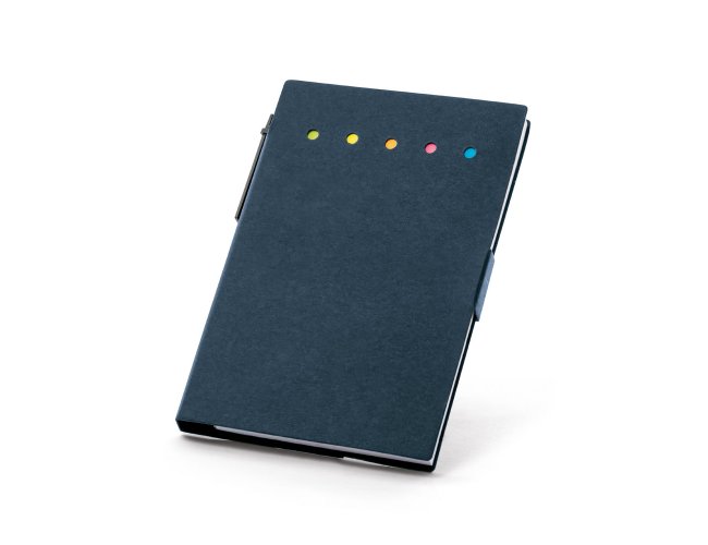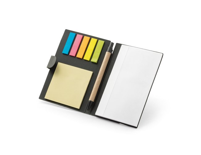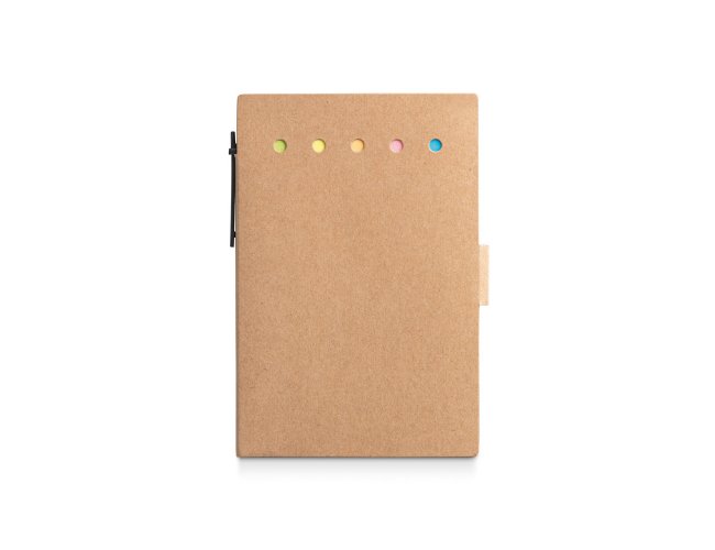 6 blocos adesivados com 25 folhas cada e capa em papel kraft reciclado. Incluso caderno com 100 páginas lisas e caneta esferográfica em papel kraft reciclado, com escrita em azul. A capa e as notas adesivas são feitos de papel proveniente de gestão florestal sustentável. 100 x 150 mm