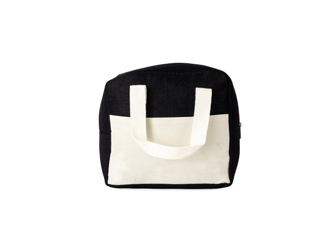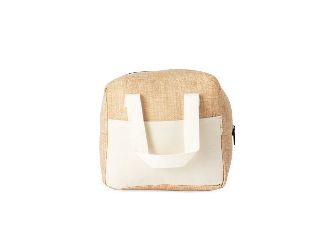 Bolsa térmica confeccionada em poliéster, com fechamento em zíper e capacidade máxima de 8 litros. Possui revestimento térmico em folha de alumínio, além de bolso frontal aberto e alças de mão em poliéster mesclado com algodão.