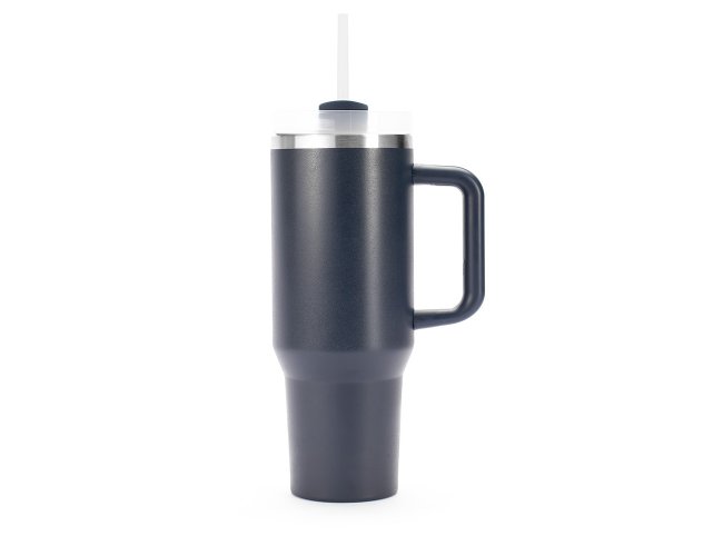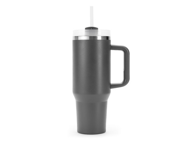 Caneca térmica com capacidade de 1,2 litros feita em inox 304 com parede dupla, contém tampa acrílica rosqueável com acesso para canudo e pegador plástico com aderência emborrachada. Acompanha canudo plástico.