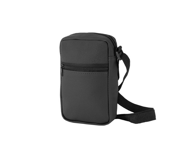 Bolsa de ombro confeccionada em couro sintético com fechamento em zíper e alça ajustável. Possui dois compartimentos: um com bolso aberto em tecido de malha e outro localizado na parte frontal.