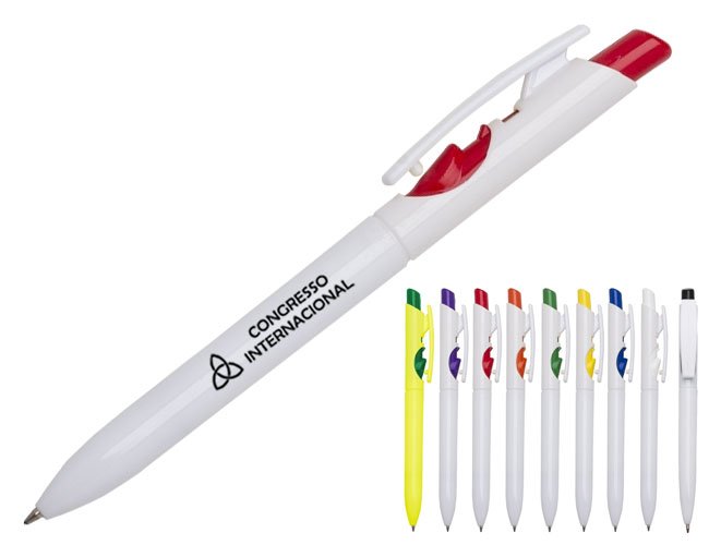Descrição: Caneta plástica com carga esferográfica azul 1.0 mm e acionamento por clique.