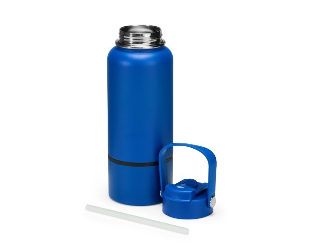 Descrição: Garrafa térmica em inox com pintura eletrostática e capacidade de até 700ml. Apresenta estrutura interna de parede dupla e vedação a vácuo, o que ajuda a conservar a temperatura de líquidos por mais tempo. Conta ainda com fundo removível. Possui tampa plástica rosqueável com protetor para o bocal, bico flip, canudo interno removível e alça fixa para transporte.