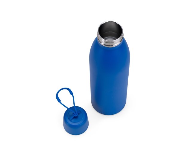 Garrafa térmica de parede dupla, com parte externa em inox 201 e pintura aplicada por spray, e camada interna em inox 304. Com capacidade para até 500ml, conta ainda com tampa rosqueável em polipropileno (PP) e anel de vedação emborrachado, além de alça em nylon com detalhe em plástico.