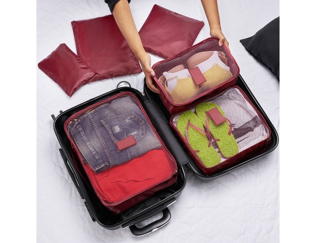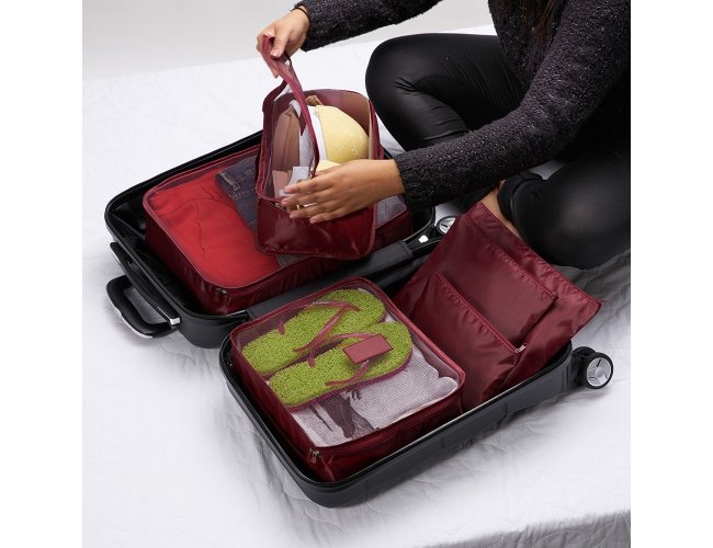 Tamanho total aproximado (CxL): Necessaire 1: 30 cm x 40 cm - Necessaire 2: 26 cm x 30,5 cm - Necessaire 3: 19 cm x 30 cm - Necessaire 4: 26 cm x 33,5 cm - Necessaire 5: 25 cm x 25,4 cm - Necessaire 6: 15,5 cm x 24 cm