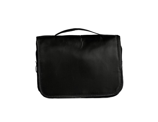 Necessaire organizadora ?travel?. Tecido Sarja, abertura frontal por velcro e alça superior, parte interna com gancho plástico; bolso interno superior de pvc e bolso de tela superior, ambos de zíper; dois bolsos inferiores de zíper, sendo o primeiro com detalhe superior em tela e 3 divisões internas com 3 elásticos para fixação, segundo bolso na parte frontal interna; parte traseira possui um bolso externo. Perfeita para lhe acompanhar em viagens e até mesmo transportar seus itens pessoais do dia a dia com organização e praticidade.