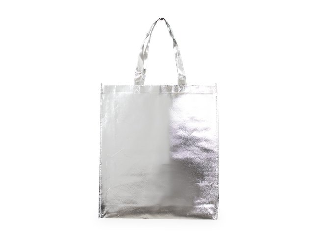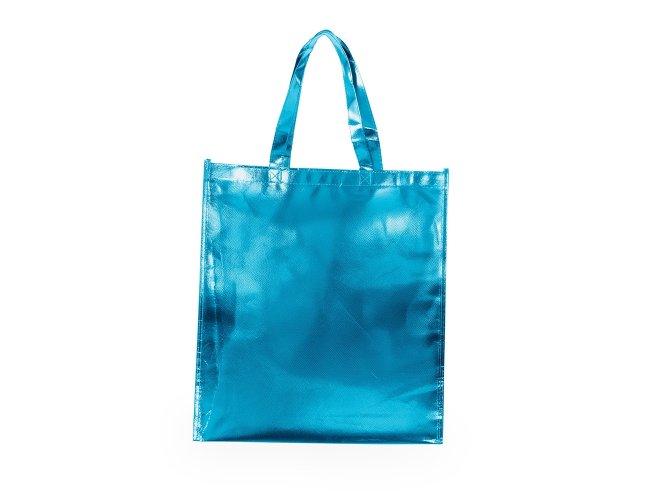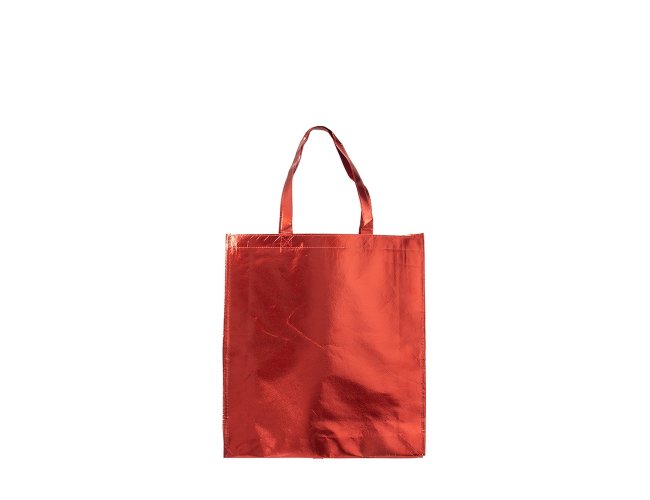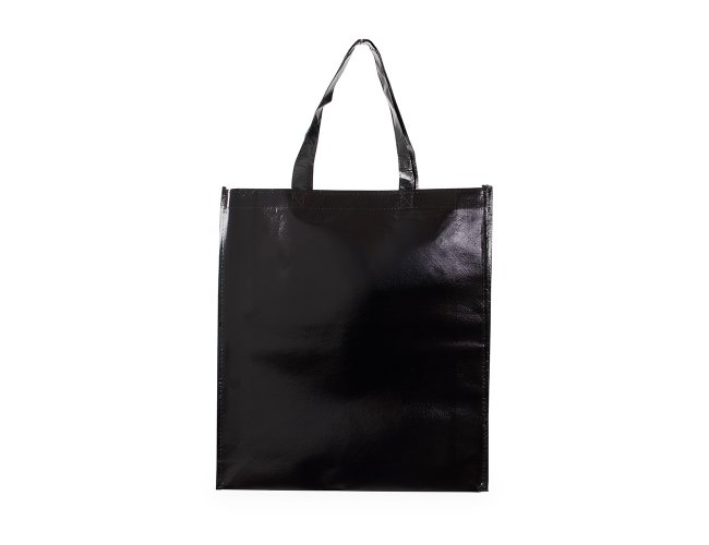 Sacola em TNT com revestimento externo laminado e duas alças costuradas. Altura : 45 cm Largura : 40 cm Profundidade : 9 cm